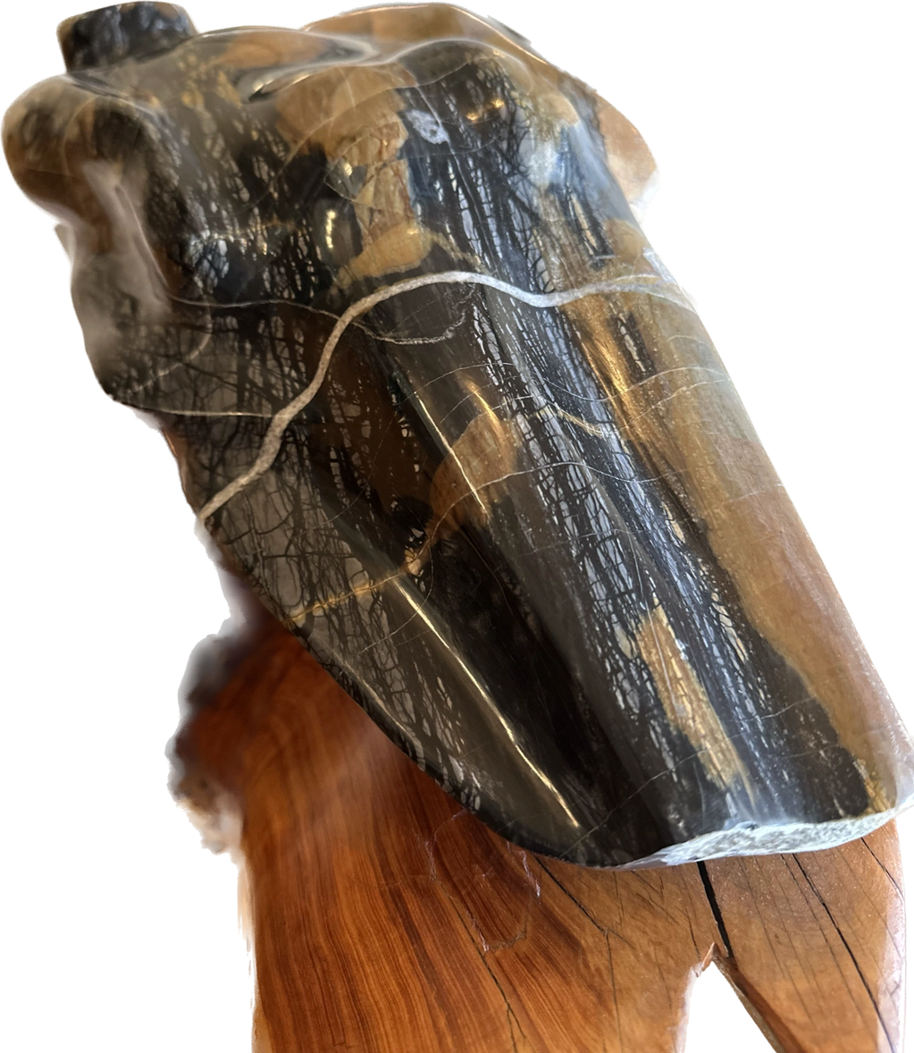 Heather Anne has individually selected the raw organic stone herself, directly from the Earth. She describes the process as the "Stone being born " from their creator Mother Earth and Father Sky. She never works with a square block of stone. She has to witness the individuality of the piece and the natural distinct patterns in the stone before she even begins working on a piece. The mountains have to inspire her soul.