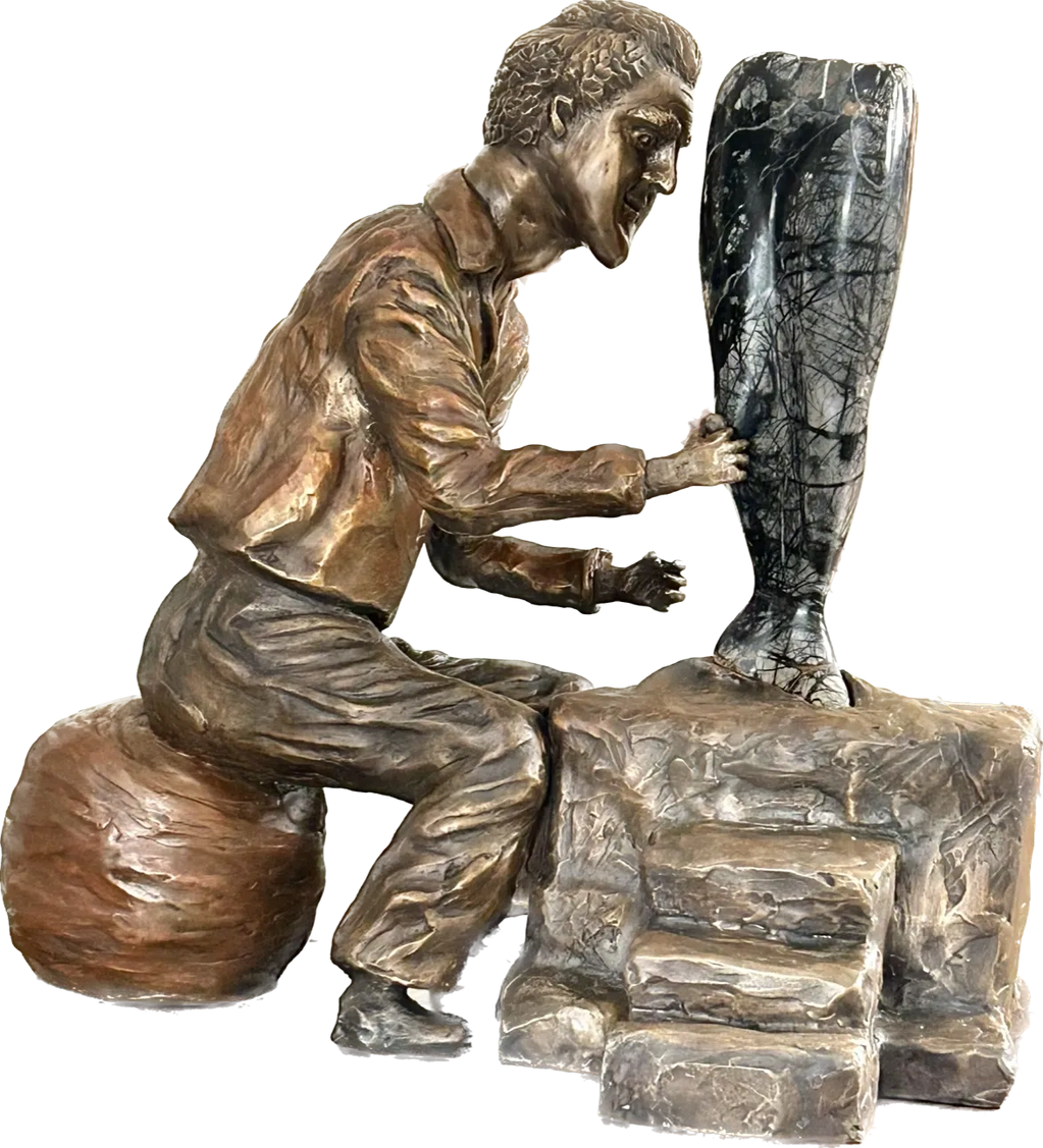 Heather Anne, after the loss of her father (world famous researcher, scientist , and professor) almost a decade ago, she turned to art to heal her heart. She started with making his gravestone out of Zebra Jasper/ and bronze( and carried it in her suitcase and installed it at the cemetery). She then began the sculpture which would be a tribute to her father's life work, the study of Motion, (" Scholz Motion Study") and how to recover people with Physical Therapy treatments, through neurological research. This was dedicated to the University of Delaware Star Campus , where her father taught PT students for over 30 years. For through this process, it led her to understand bronze and lost wax process, and she immersed herself in learning by doing. She was able to work doing the work of the metal chase and learning how to TIG weld, and the lost wax process, and sculpture with some of the greatest professional craftspeople and sculptors in the industry.